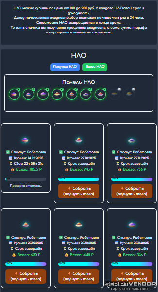 НЛО можно купить по цене от 100 до 900 руб. У каждого НЛО свой срок и доходность.