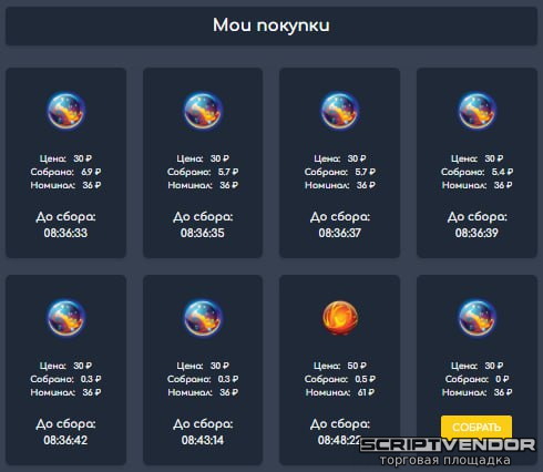 Каждые 9 часов дается определеное количество рублей (1% от стоимости GALAXY), которое нужно собрать, деньги пойдут на баланс для вывода.