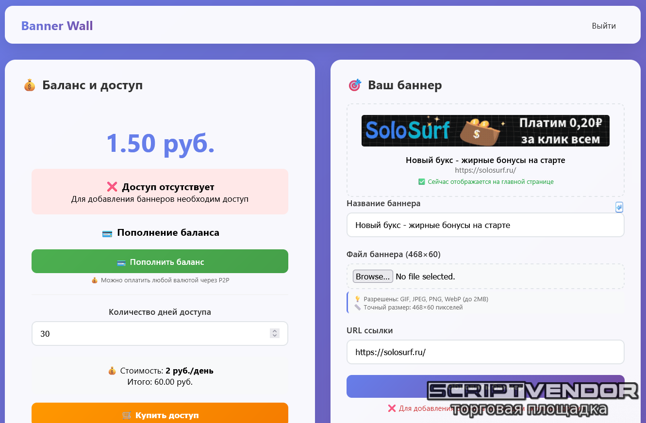 Размещение 2 рубля в день. Прием платежей: Azvox.