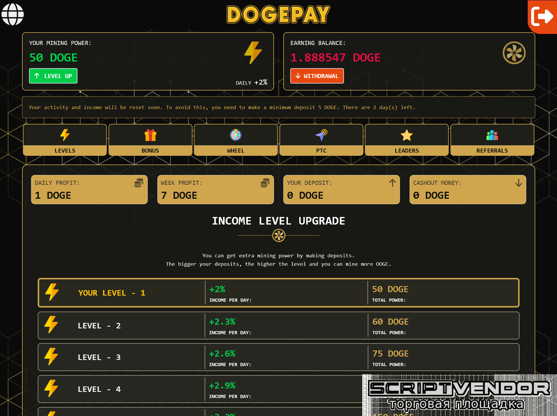 + Депозиты / выплаты через FaucetPay (DOGE).