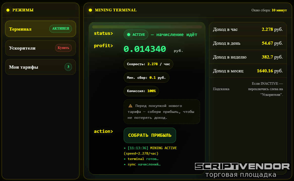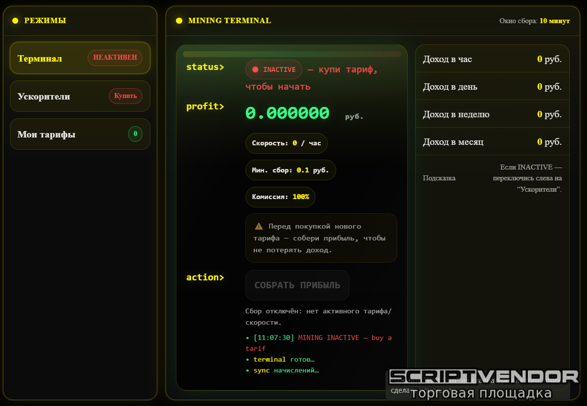 Непрерывное начисление дохода без перезагрузки страницы