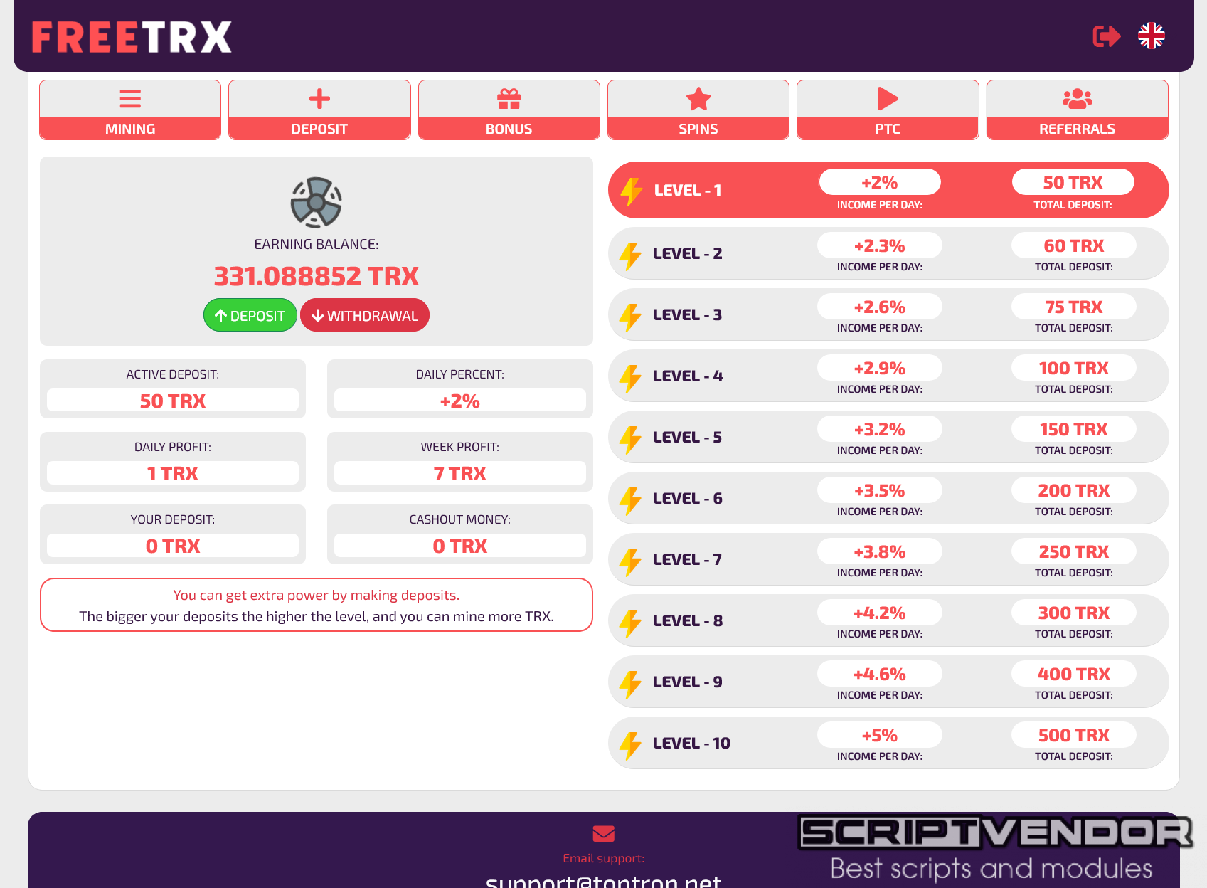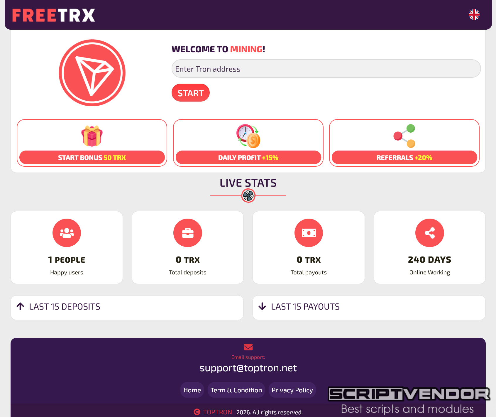 Скрипт облачного крипто майнинга TOP TRON MINING