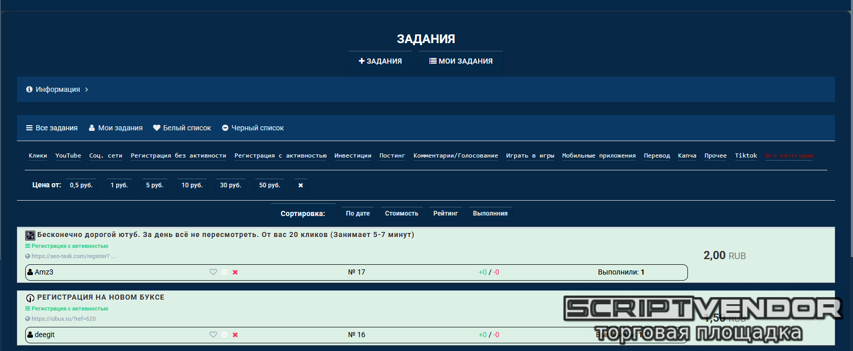 Так же предоставлена возможность скачивать и загружать бесплатные скрипты. Добавь 5 скриптов и получи статус ТОП УЧАСТНИК.. Если вы не нашли нужный вам скрипт вы можете оставить заявку Админу-после мы найдем и выставим на продажу!