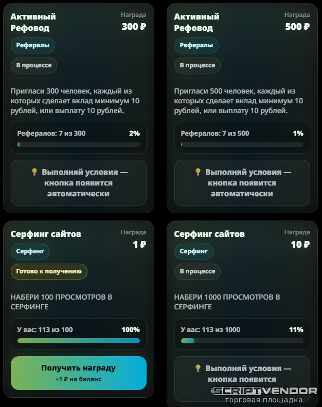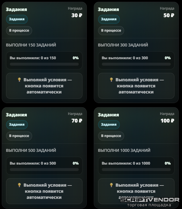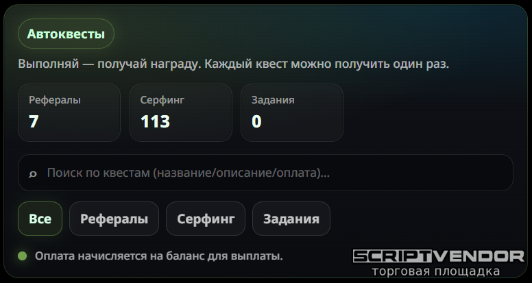 Полностью готовый модуль квеста с улучшенной визуализацией и современным тёмным неон-дизайном.