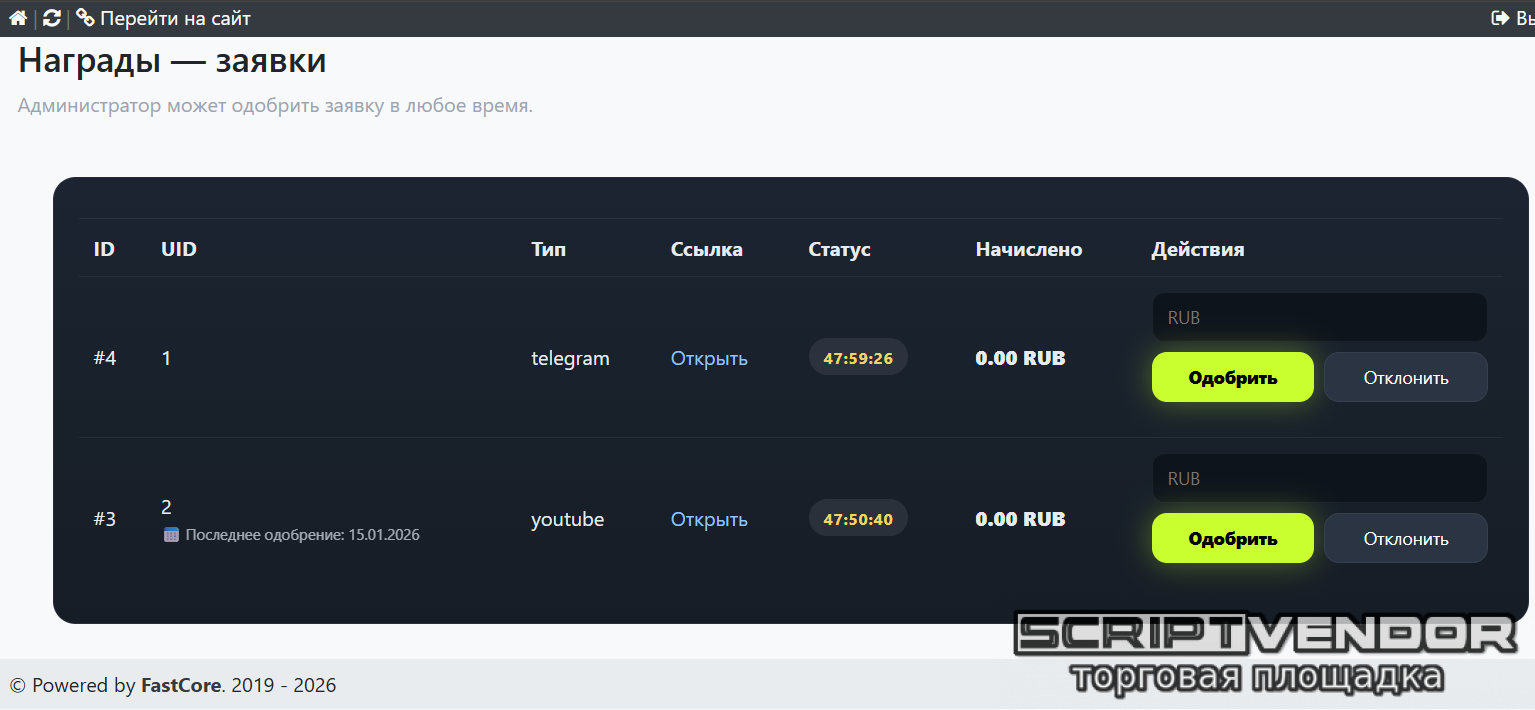 • Ручная модерация заявок администратором