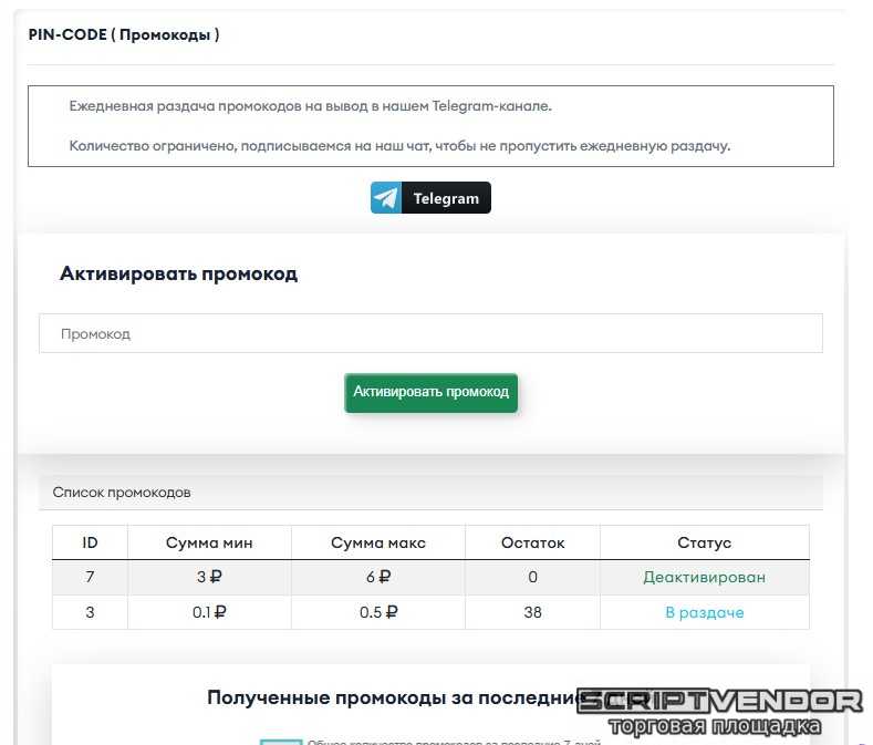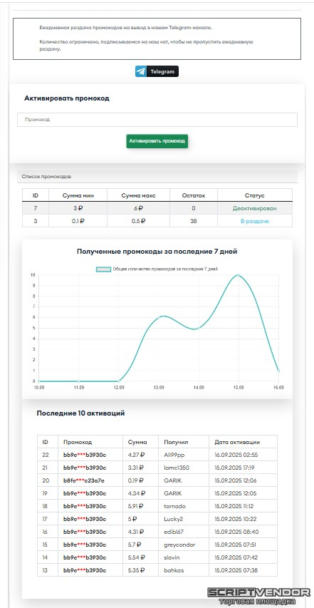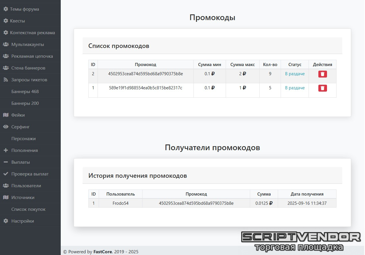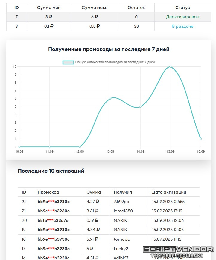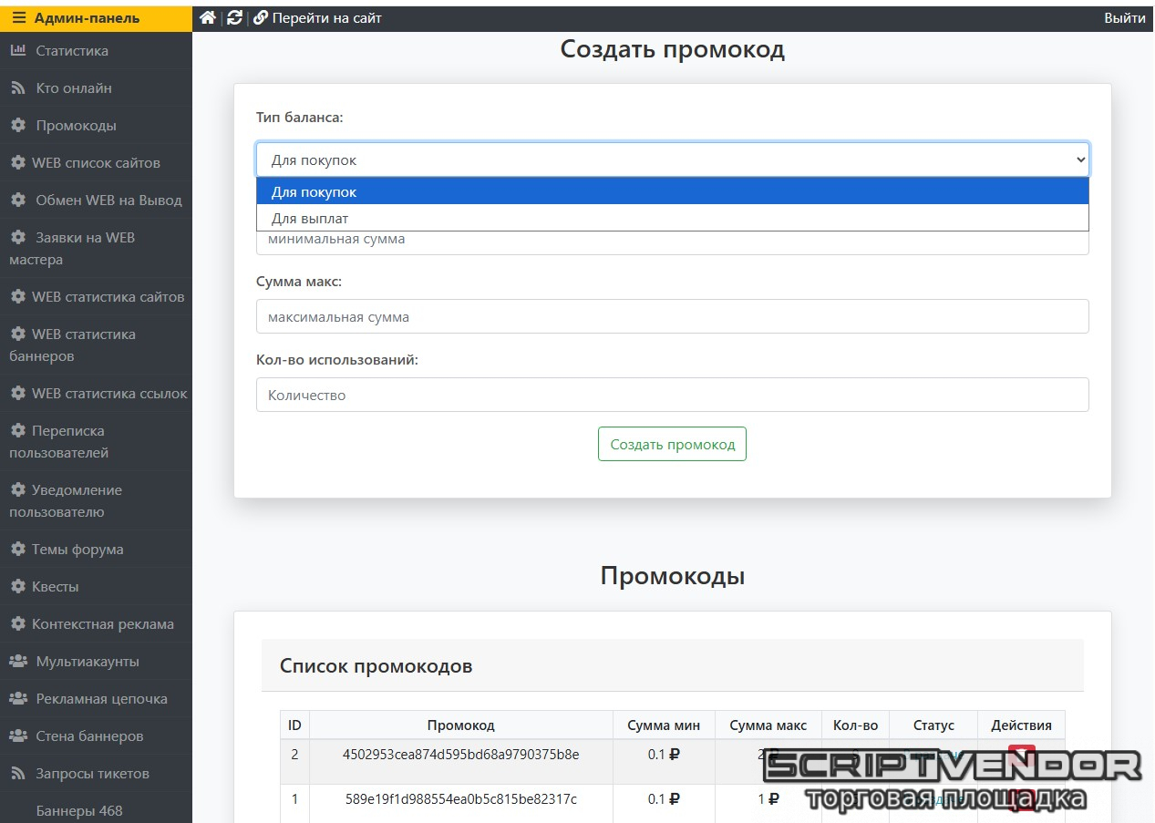 Удобная панель добавления и контроля промокодов в админке