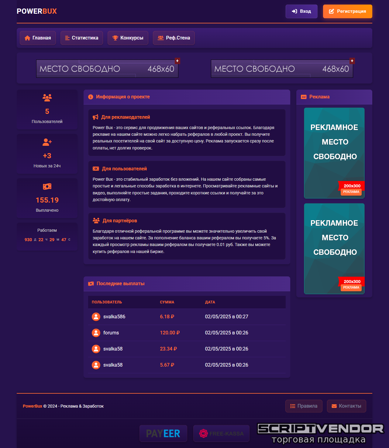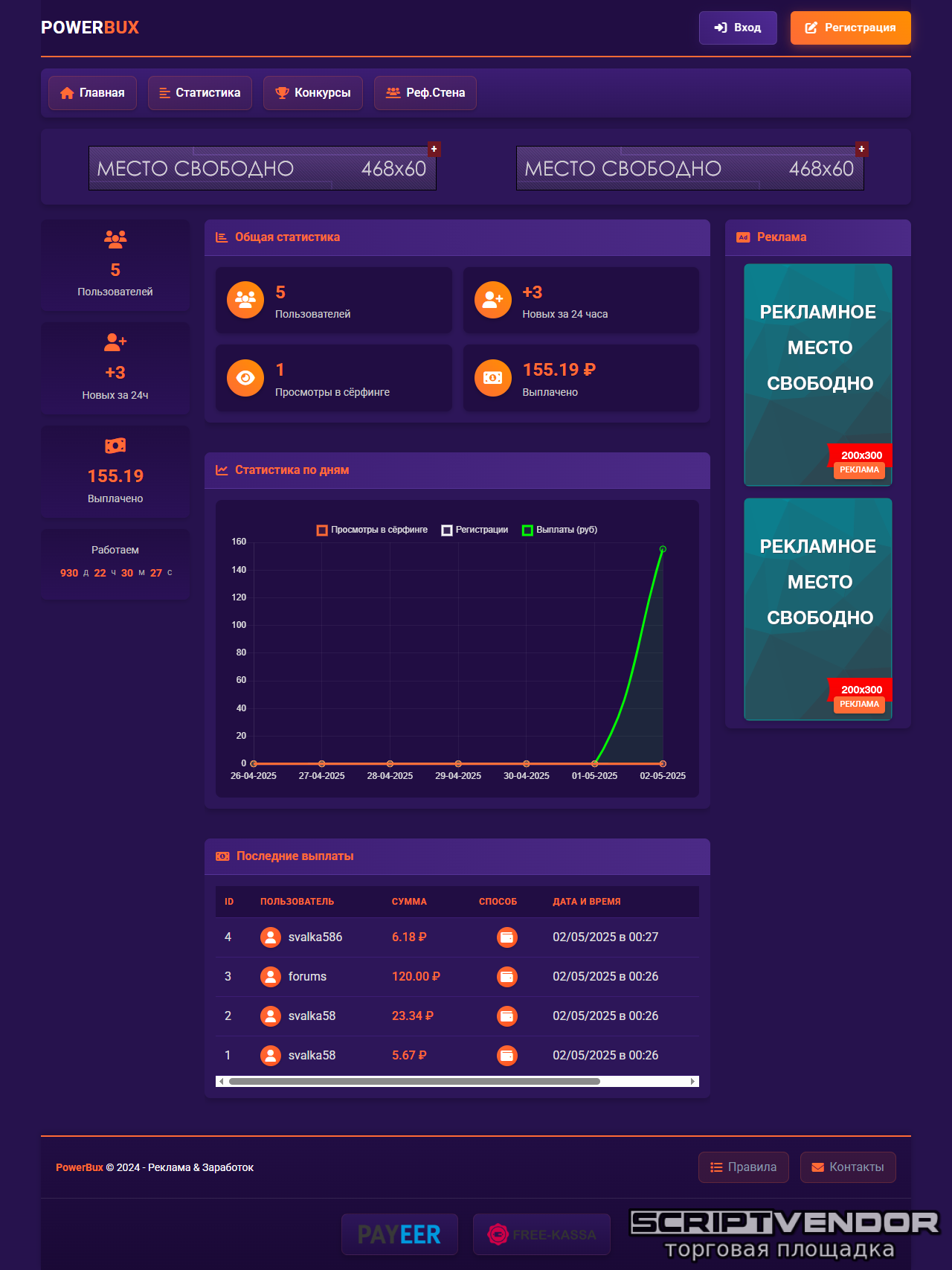 В админке ручные фейки ( Регистрации, Пополнения, Выплаты )