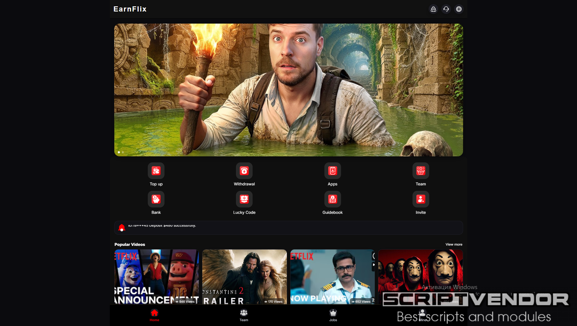 - Заработок на просмотре: В разделе "Popular Videos" представлены ролики, за просмотр которых начисляются средства.