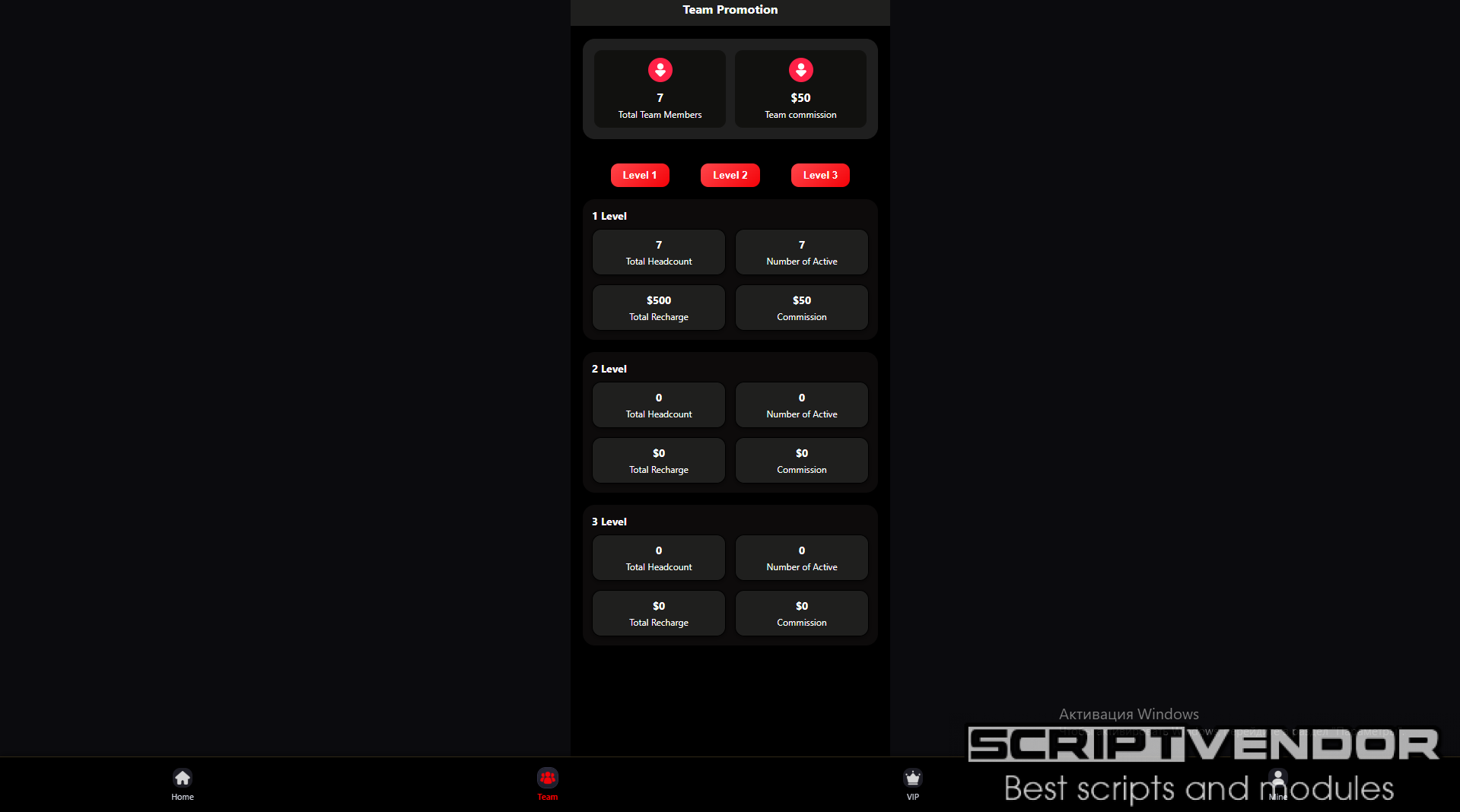 - Реферальная система (Invite/Team): Возможность приглашать друзей и получать бонусы от их активности.