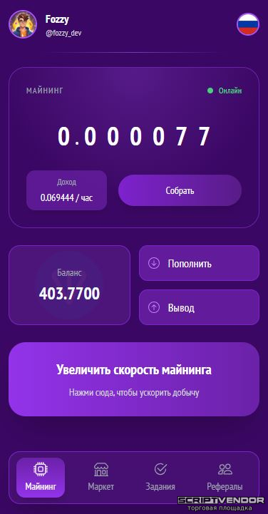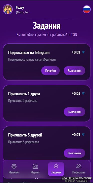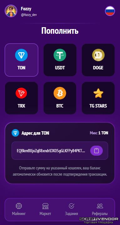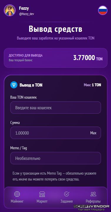 Проект готов к запуску! Это мини-приложение для Telegram с функционалом для работы с TON: