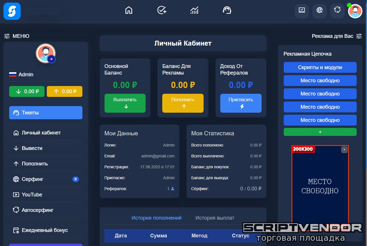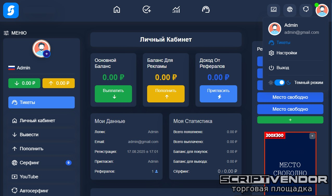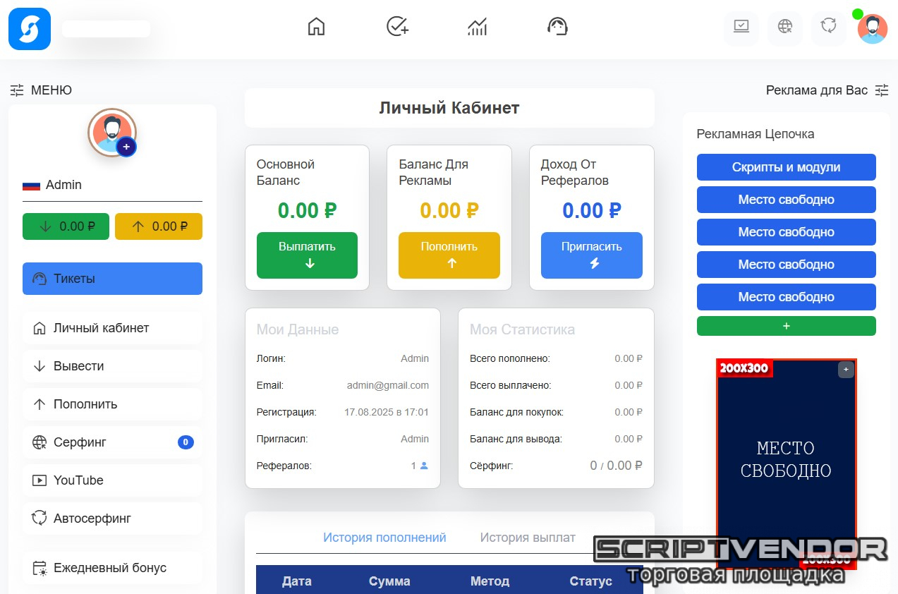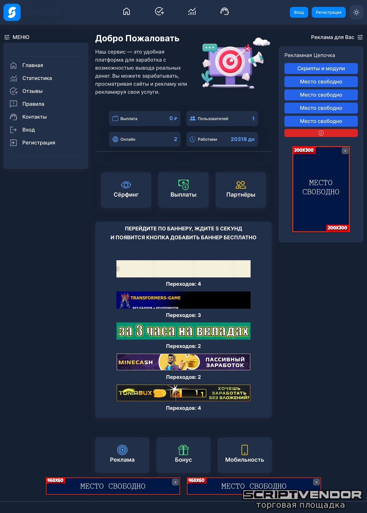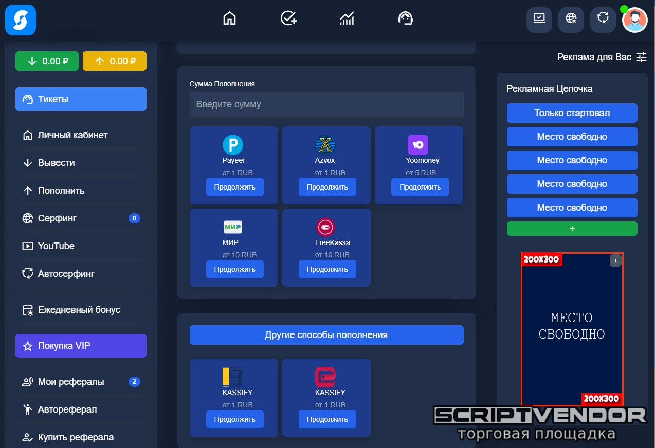 Серфинг , Серфинг YouTube , Автосерфинг , Ежедневный бонус , Покупка VIP , Автореферал , Покупка реферала ,